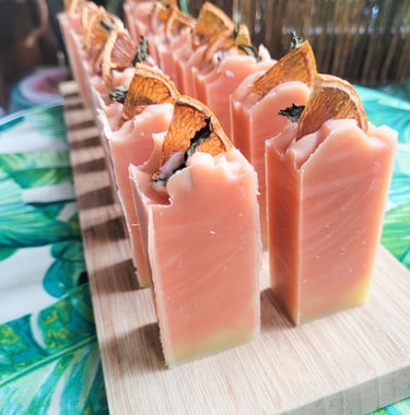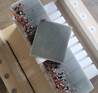 Our artisan soap requires a ton of love and labor from the start to finish. After planning and curating our soap. We cut and cure each bar for 4-6 weeks. Beveling each side to create a beautiful and easy lather for our customer (Rustic edition is kept as is for aesthetic). Our bars are cut into 1 inch (2.54cm) using a multi-wire cutter to insure each bars are evenly cut. Do keep in mind that soap will continue to shrink during the curing process due to the evaporation of water.